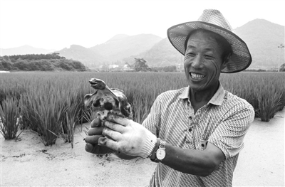 自从在水稻田里养了甲鱼后,在他眼里,这些鳖不但是致富宝,更是“好帮手”。“甲鱼在生长过程中会吃掉一部分害虫,无形之中,也就成了水稻的护理员。”韩时平说,同时甲鱼产生的排泄物,还会成为水稻的有机肥。所以,现在他的这块稻田既不用施肥,也不用打农药,因为甲鱼与水稻在此“和平共处”。