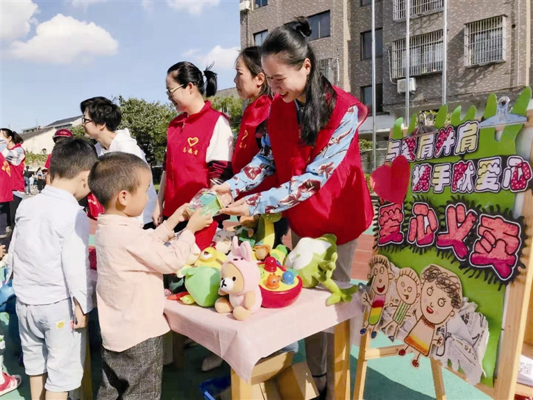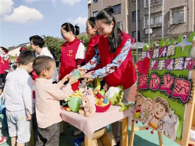据介绍,一周前,该幼儿园就发出了活动倡议书,孩子们纷纷把自己心爱的毛绒玩具、图书、智力拼图等带到幼儿园,标价义卖。活动中,每个摊位都围满了人,孩子们挑选着自己心仪的物品,家长志愿者和党员教师们负责收钱找零、负责做记录,用实际行动献出自己的一份爱心。