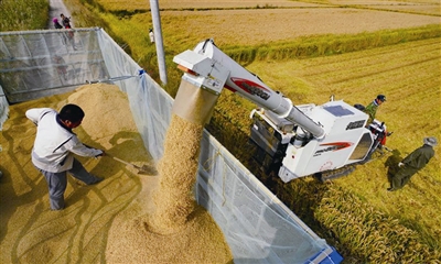 金秋时节,河北省唐山市曹妃甸区农民抢抓农时收割水稻、捕捞稻田蟹,一派繁忙景象。今年该区水稻种植面积32万亩,其中稻蟹立体种养面积达5.5万亩。