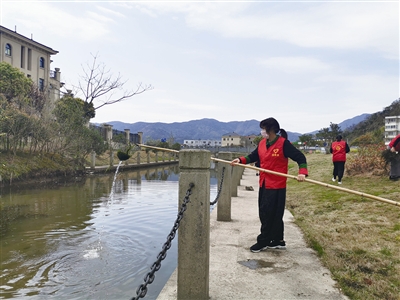 3月22日至28日是第三十三届“中国水周”。昨日,东陈乡农办、妇联和团委,组织巾帼志愿者、“河小二”与河道保洁员,来到辖区船岙通河,捡拾岸边垃圾,清理河面漂浮物,进一步营造惜水、爱水、护水的浓厚氛围。(记者 胡凯 通讯员 王威)
