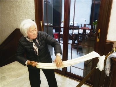 老人的女儿顾圣亚告诉记者,妈妈娘家是东陈南堡村人,家里以前是开糖坊店的。傅爱玉十几岁就学做糖了,打白糖已有80多年,这门手艺可以说是祖传的。傅爱玉的外甥黄凯从小由外婆带大,也是吃着外婆打的糖长大的。他回忆说,小时候,经常跟着外婆去卖糖,买糖的人吃得开心,都夸外婆手艺好。那也是他和外婆最开心的事。