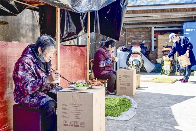 丹西街道杨蓬岙的象山半岛仙茗专业合作社茶园内,一陇陇茶树苍翠碧绿,一颗颗新芽嫩绿挺秀,在茶农胡向日的带领下,10多位采茶工人戴着口罩、挎着茶篓,散落在茶丛中来回穿梭,采摘着新茶。