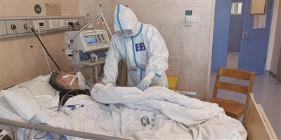 “进入病区那一刻,感觉空气都是凝重的。”林益说,由于当时疫情形势严峻,患者内心恐惧,医护人员心理压力也大,整个病区的气氛都很沉重。为了舒缓患者焦虑的情绪,林益和同事们想尽了办法,自学湖北方言和老人聊天、多方沟通帮忙寻找家属、尽可能满足患者需求……在他们不懈的努力下,病区的氛围日渐好转,“执拗”的患者也开始积极配合起治疗。而每天6小时的高强度工作,对身心都是严峻的考验。防护服内一身汗,护目镜内全是雾,是林益工作的常态。作为一名呼吸科医生,每次进入病房后,他都会先到有呼吸机的重症患者床边,观察患者的状态,调整呼吸机参数,检查面罩密闭性,让呼吸机发挥最佳的治疗效果。
