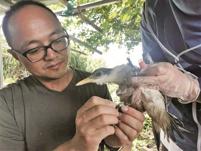 “每只幼鸟左脚戴金属环,右脚戴塑料环。”浙江自然博物院研究员范忠勇介绍,金属环是鸟类的“全球身份证”,而绿色塑料环比较醒目,有利于野外跟踪观测。环志工作旨在了解凤头燕鸥的迁徙状况,为其种群的保护工作提供科学依据。