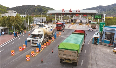 本报讯 昨日上午10时许,宁波市银辉运输有限公司的肖师傅驾驶货车经象山北收费站下高速,站在卡口的执勤人员挥手引导车辆分流,在仔细核对货车通行证和驾驶员身份证后予以放行。