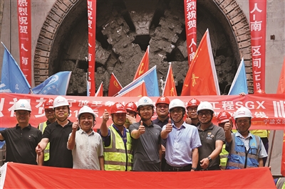 本报讯 (记者 朱磊 通讯员 赵彦龙 吴佳麒) 8月29日上午,随着盾构机刀盘破洞而出,宁象铁路SGXS10标人民广场站至南部新城站盾构区间左线顺利贯通。